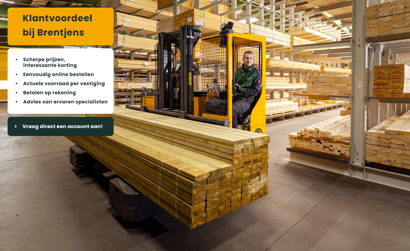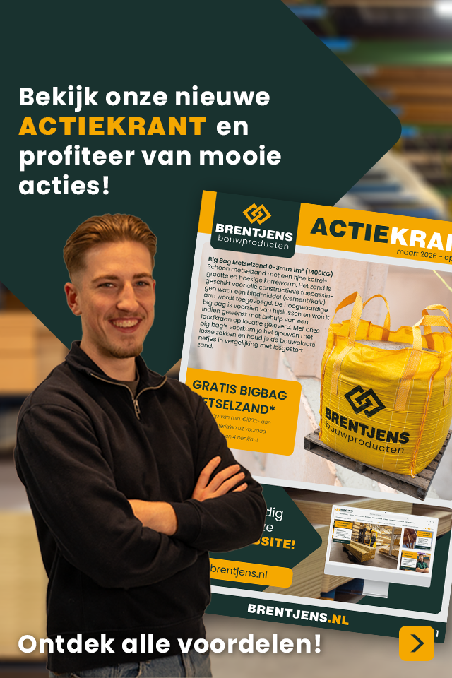 Brentjens is dé leverancier van bouwmaterialen voor vakmensen in Limburg en Brabant. Je vindt bij ons alles wat je nodig hebt: van ruwbouwmaterialen, hout en plaatmateriaal tot isolatie en gereedschap. Dankzij onze slimme logistiek en het moderne bewerkingscentrum leveren we bouwmaterialen en complete bouwpakketten exact op maat, op tijd en op locatie. Zo werk jij sneller, slimmer en zonder gedoe bij elk project, of het nu gaat om een verbouwing, nieuwbouw of interieur.